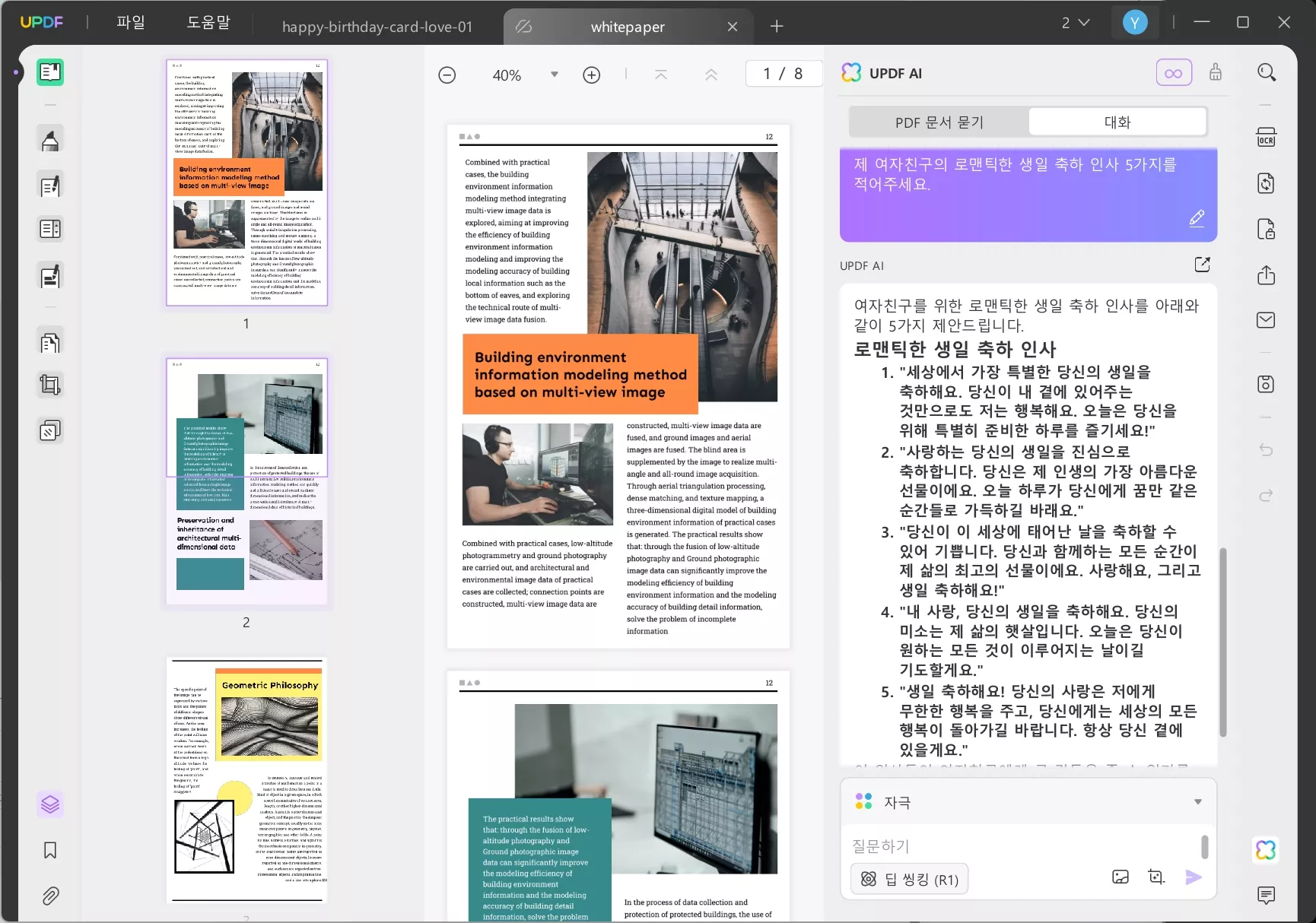 요즘은 디지털 생일 카드가 대세인데요, UPDF를 사용하면 여자친구를 위한 완벽한 생일 카드를 쉽게 만들 수 있습니다. UPDF는 PDF 템플릿 편집에 최적화된 도구로, 원하는 생일 메시지를 쉽게 커스터마이즈할 수 있습니다. 지금 바로 UPDF를 다운로드하고, 특별한 생일 카드를 만들어보세요!