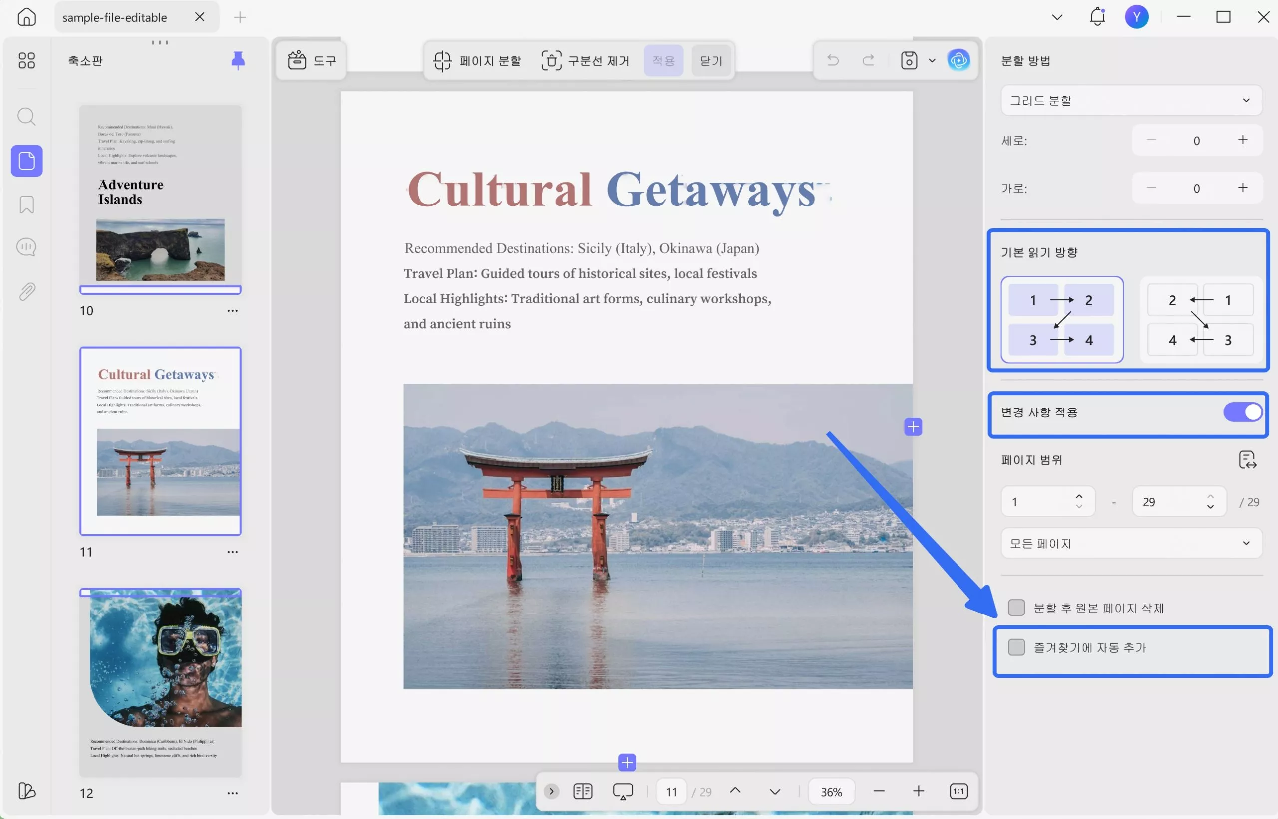 아래 영상을 통해 페이지 분할 방법을 배워보세요.