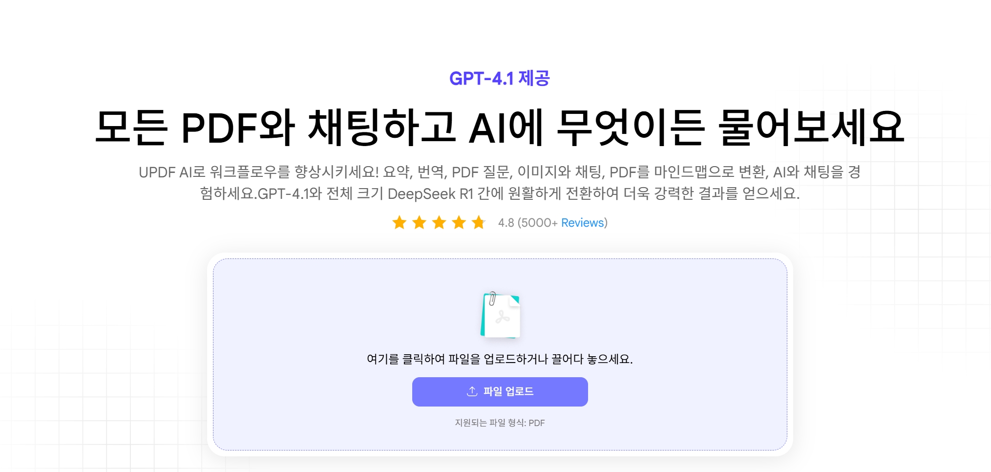 1. UPDF AI는 모든 기기(Android, iOS, Windows, Mac)와 웹 버전에서 기존 GPT-4.1 모델을 OpenAI의 새로 출시된 GPT-5로 업그레이드하여, 요약, 설명, 번역, 마인드맵 생성, 문서 이해 및 대화형 채팅 등 AI 채팅 관련 모든 기능에서 획기적인 백엔드 지능 향상을 제공하고 있습니다.