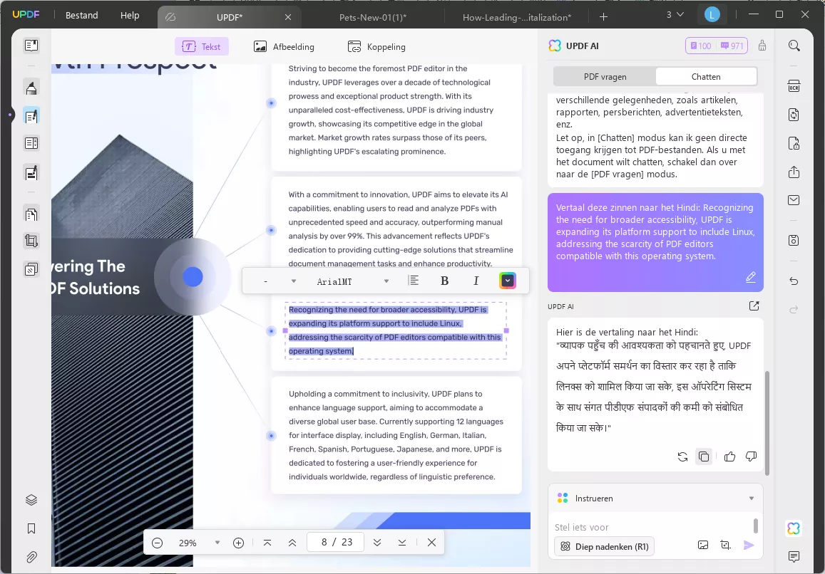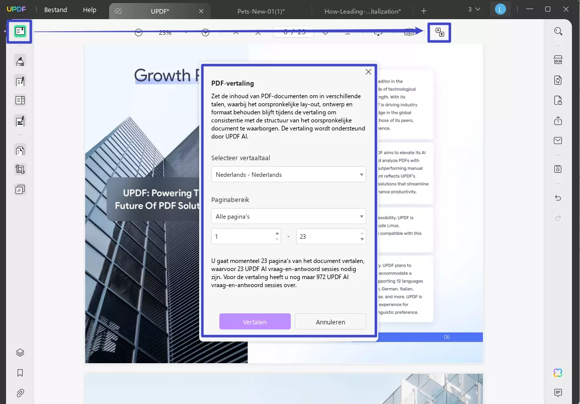 Met UPDF AI kun je de hele PDF in enkele seconden vertalen. Hier is de handleiding.