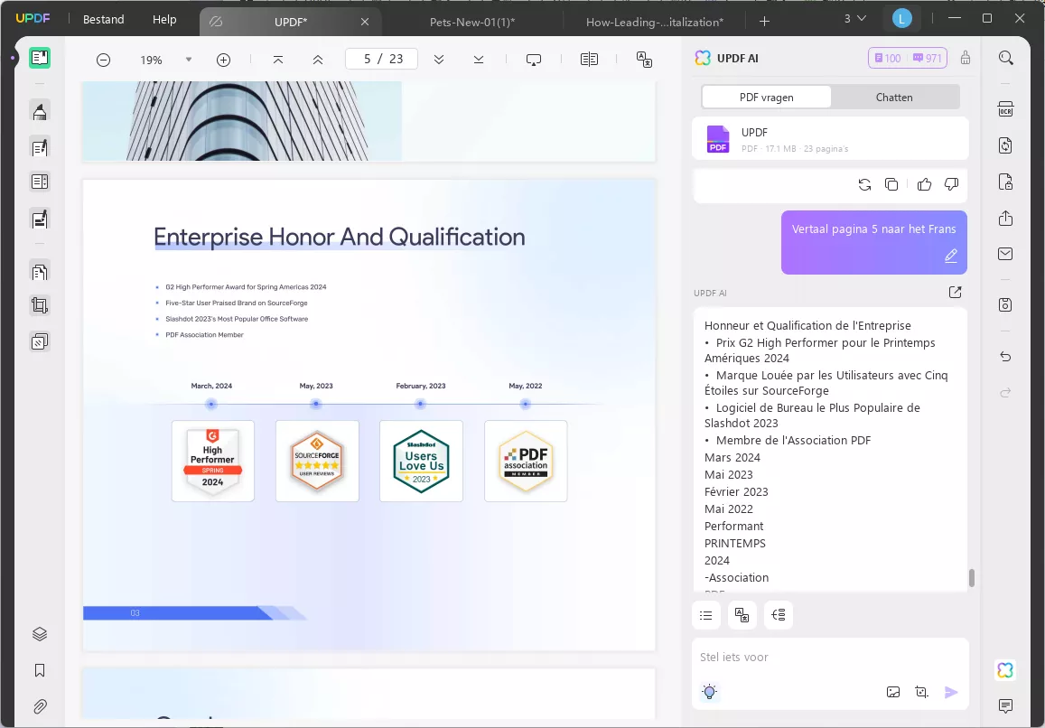 De eerste tool om PDF te vertalen is UPDF AI . Deze is nu geïntegreerd met ChatGPT en introduceert AI-functies om de gebruikerservaring en functionaliteit te verbeteren. Download het nu en gebruik 100 gratis prompts om PDF te vertalen!