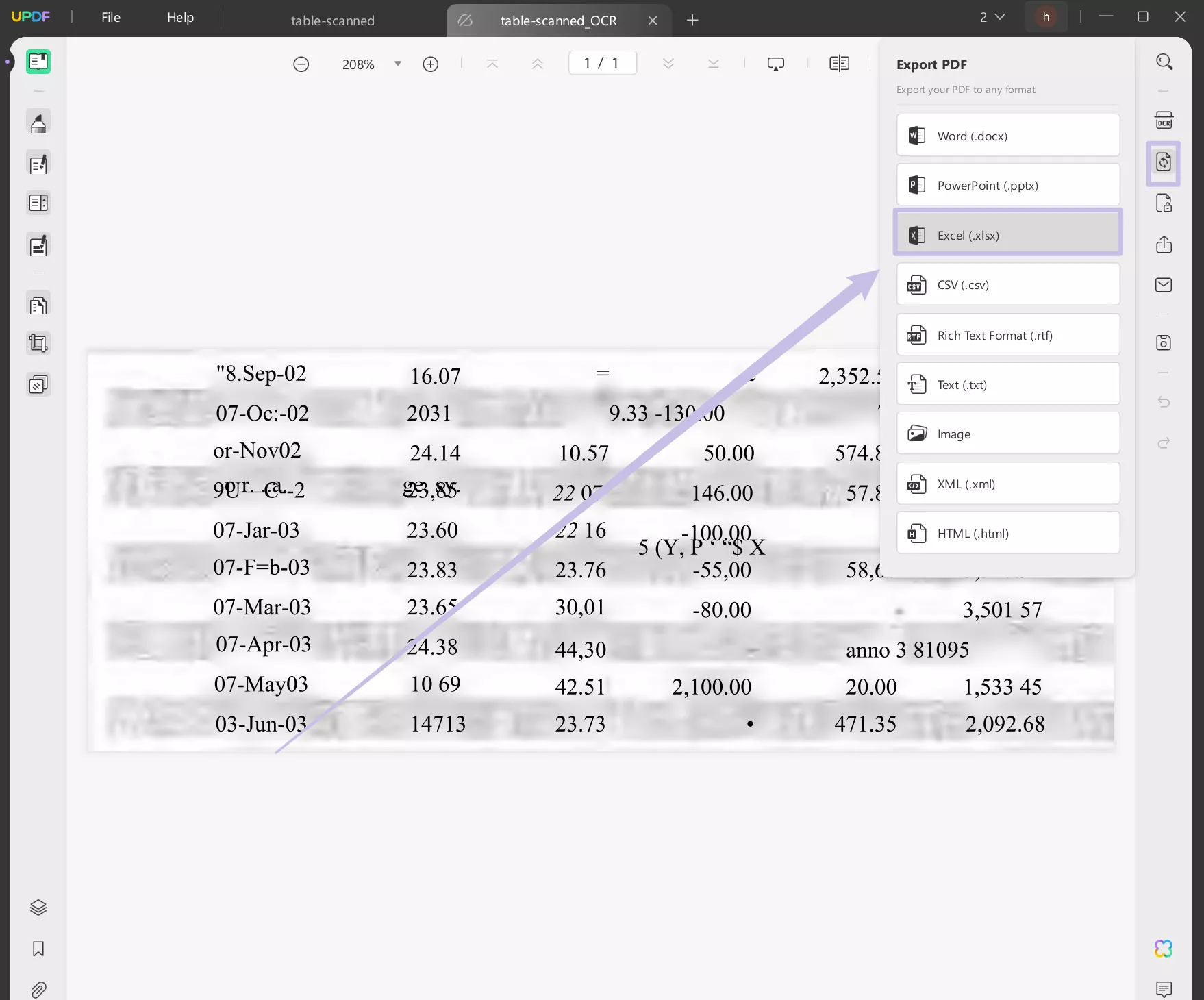 If you find the scanned table is blurry and the result is not accurate, you can use UPDF's AI assistant to convert scanned PDF to Excel. Here is the guide.