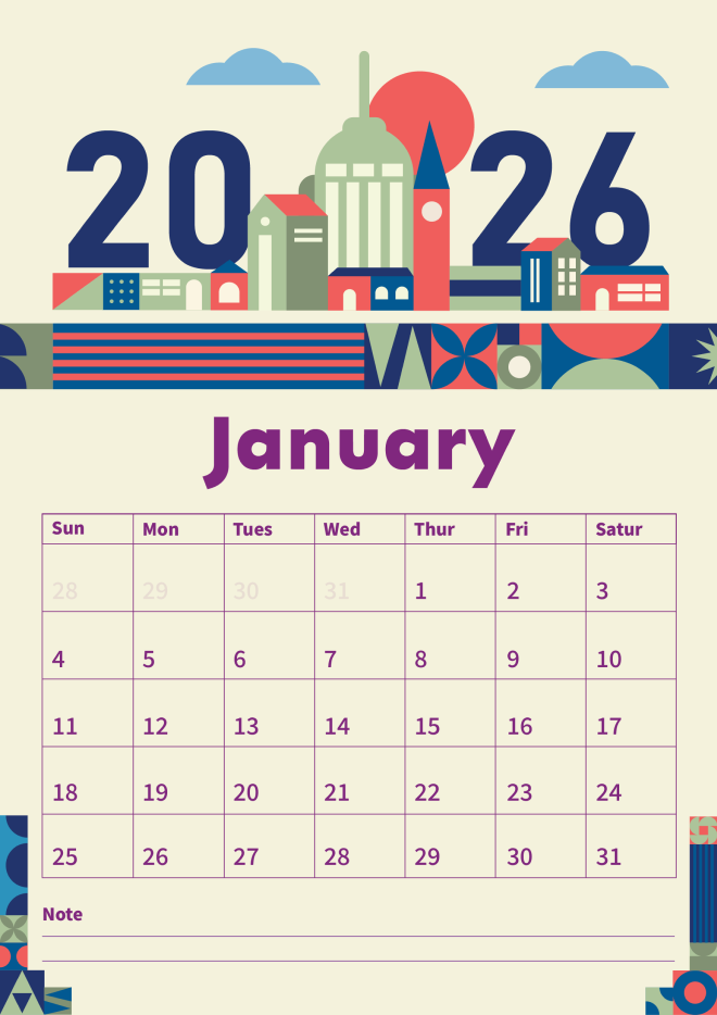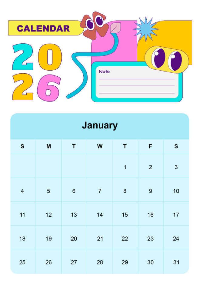 Planning your days around the year is much easier with this vibrant graphics-boasting calendar for 2026. Edit it once, and there’s no going back for sure!