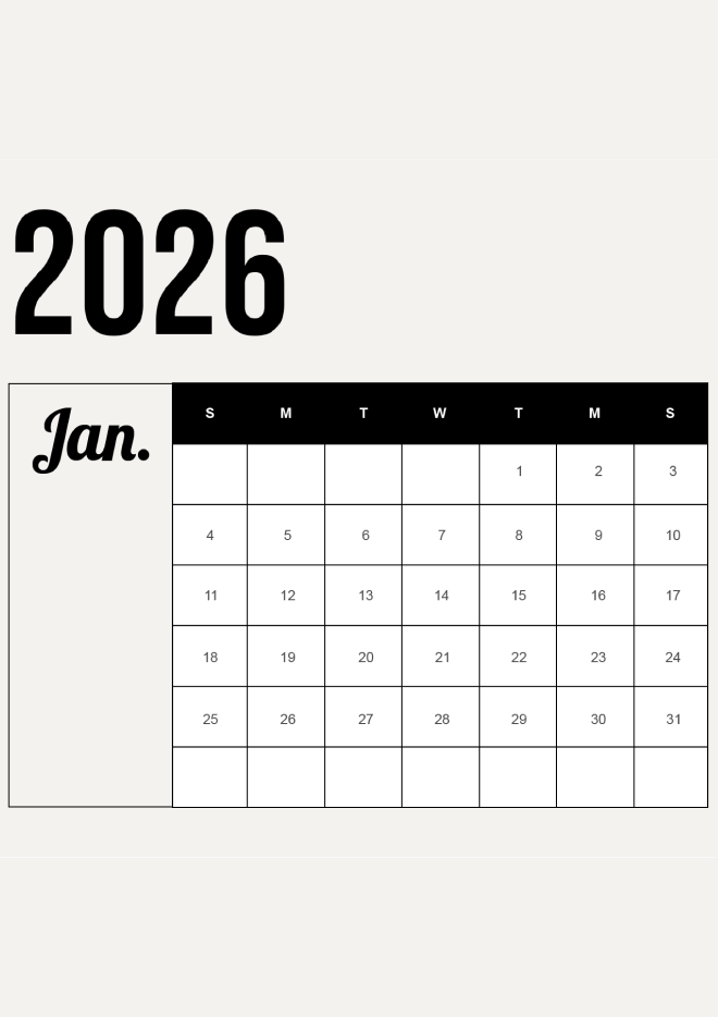 Stay organized throughout 2026 with this clean and modern monthly calendar. Its simple layout makes planning effortless, helping you stay on top of schedules, tasks, and important dates with ease.