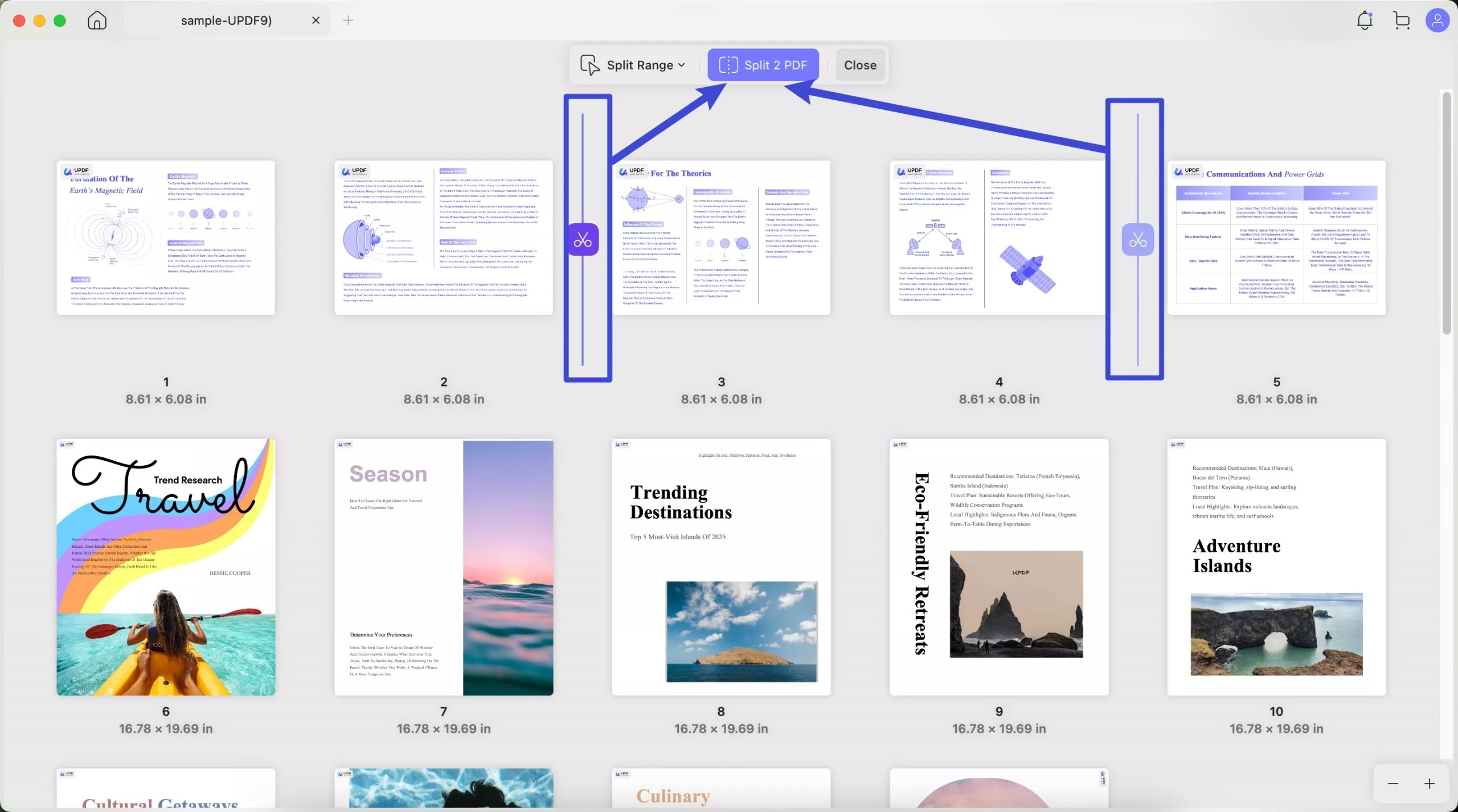UPDF on Mac allows you to split a PDF into multiple small PDF documents by pages, Size, Top-Level Bookmarks, or customized pages.