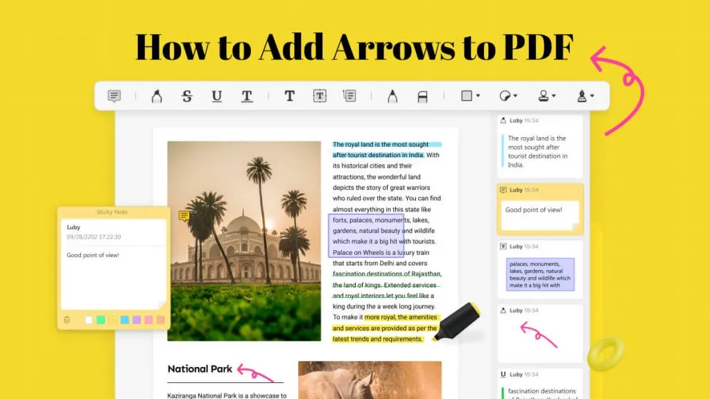 - Sticky notes: Drop little note bubbles on any part of your PDF.