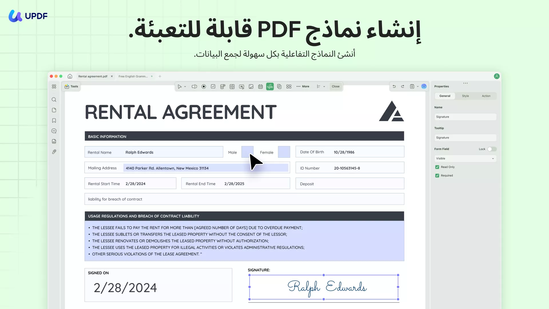 يمكن للمستخدمين الآن حتى تغيير لون الخط النصي الموجود في حقول النموذج القابلة للملء. عليك فقط الدخول إلى وضع "تحضير النموذج" في UPDF لإتمام المهمة باستخدام هذه الخطوات البسيطة.