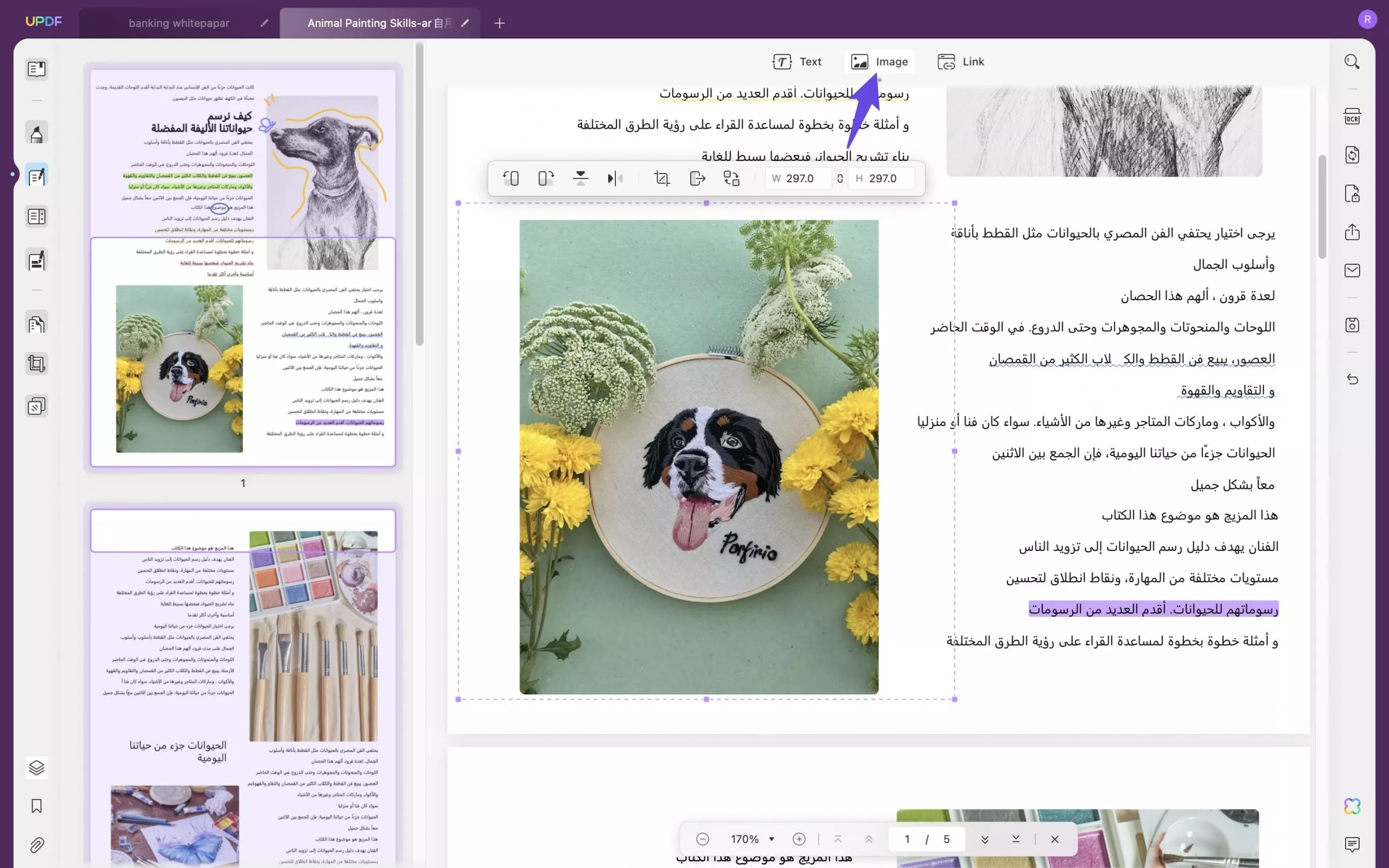 لإضافة صور جديدة إلى ملف PDF، انقر على زر ”Image(صورة)“ وقم بتحميل صورة جديدة.