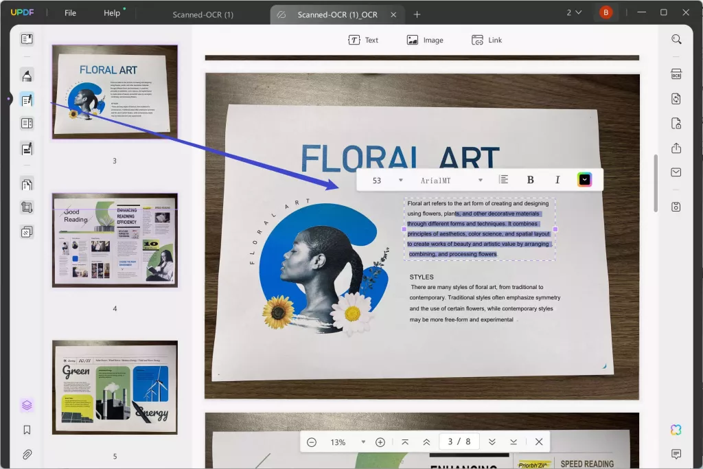 - بعد ذلك، انتقل إلى وضع التحرير، ومن هناك يمكنك تحرير النصوص والصور والروابط في ملف PDF المحول بعد إجراء التعرف الضوئي على الحروف.