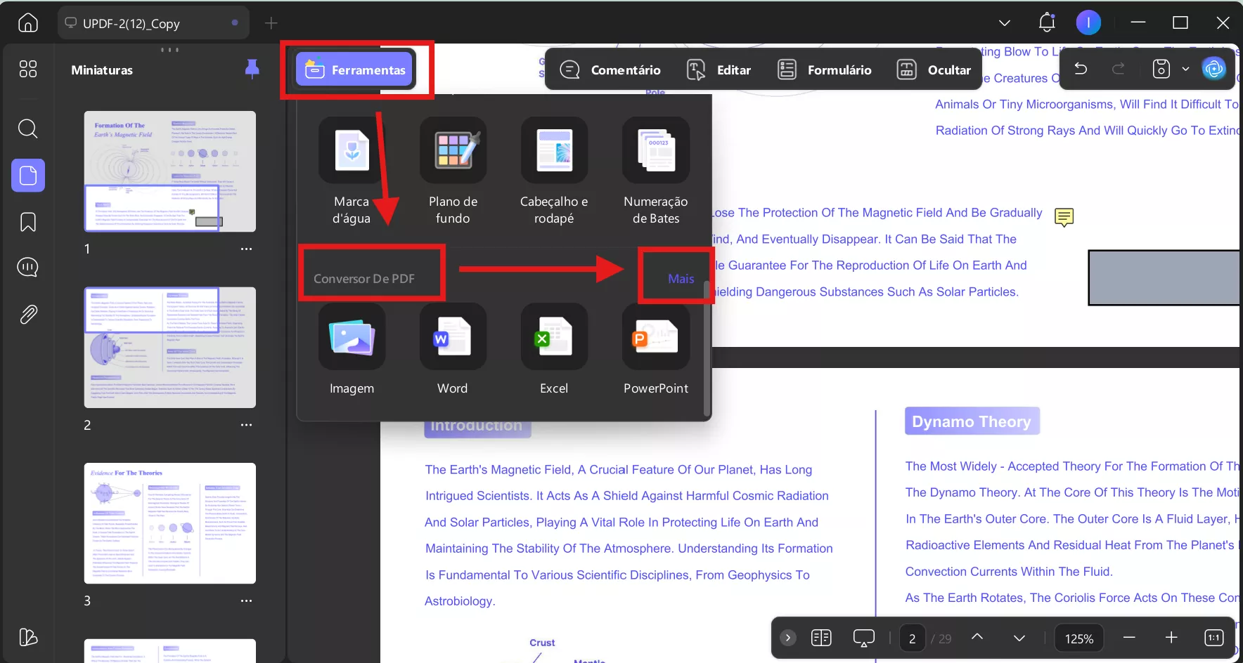 1.Converter página PDF em imagem: Comece abrindo o documento PDF no UPDF. Use o recurso de exportação para transformar a página PDF selecionada em um formato de imagem, como JPEG ou PNG.