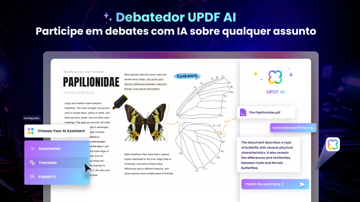 Além disso, o UPDF AI também pode resumir, explicar e traduzir o texto gerado em conteúdo conciso e fácil de entender. Então, baixe o UPDF AI hoje mesmo para descobrir as coisas incríveis que ele é capaz de fazer. Além disso, atualize para sua versão Pro para aproveitar debates intelectuais ilimitados com a IA.