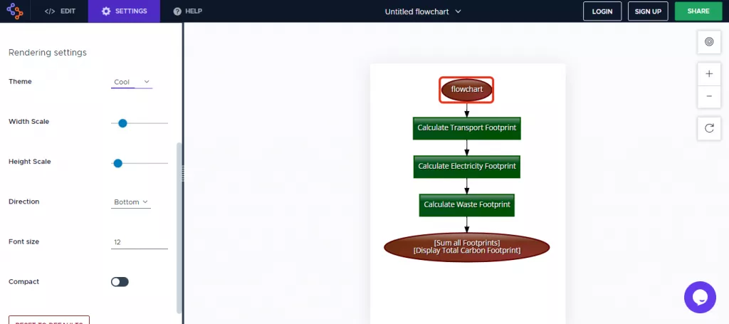 Step 3: Go to "Settings" to change the flowchart's options, such as theme, font, size, and more.