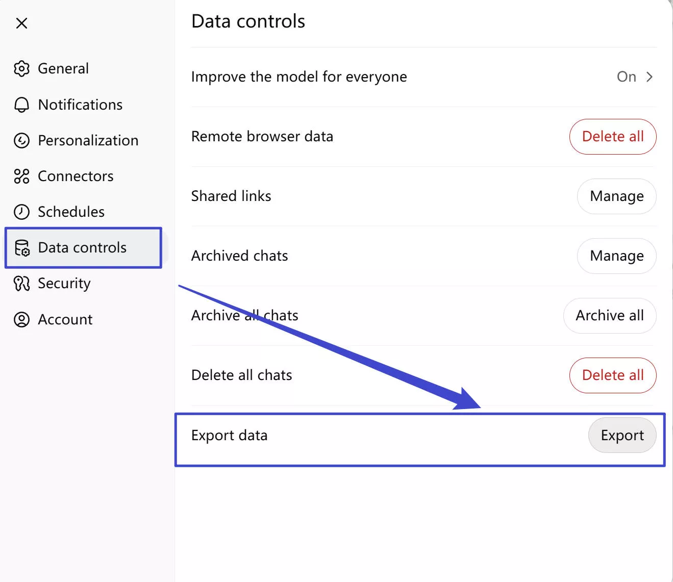 Follow these steps to export ChatGPT history to HTML: