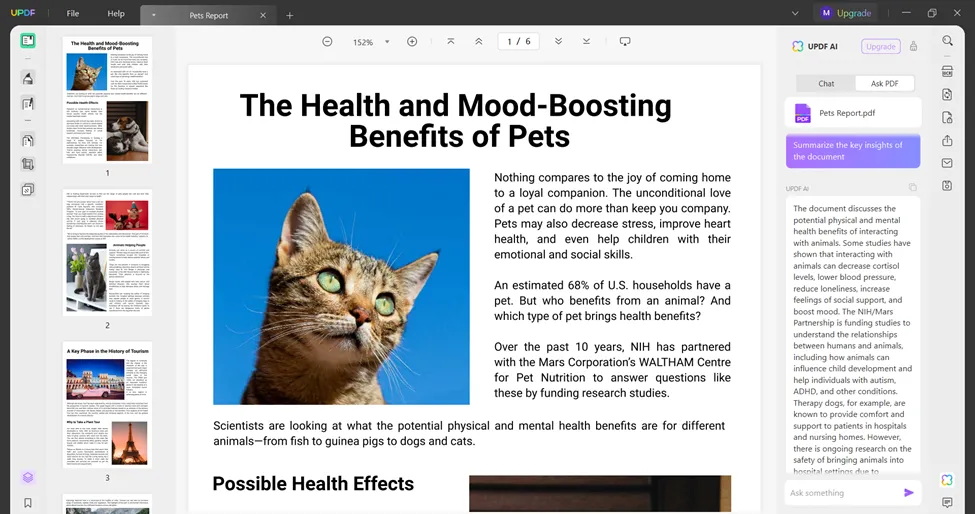 Open the document in UPDF and click the AI Assistant icon from the right sidebar.