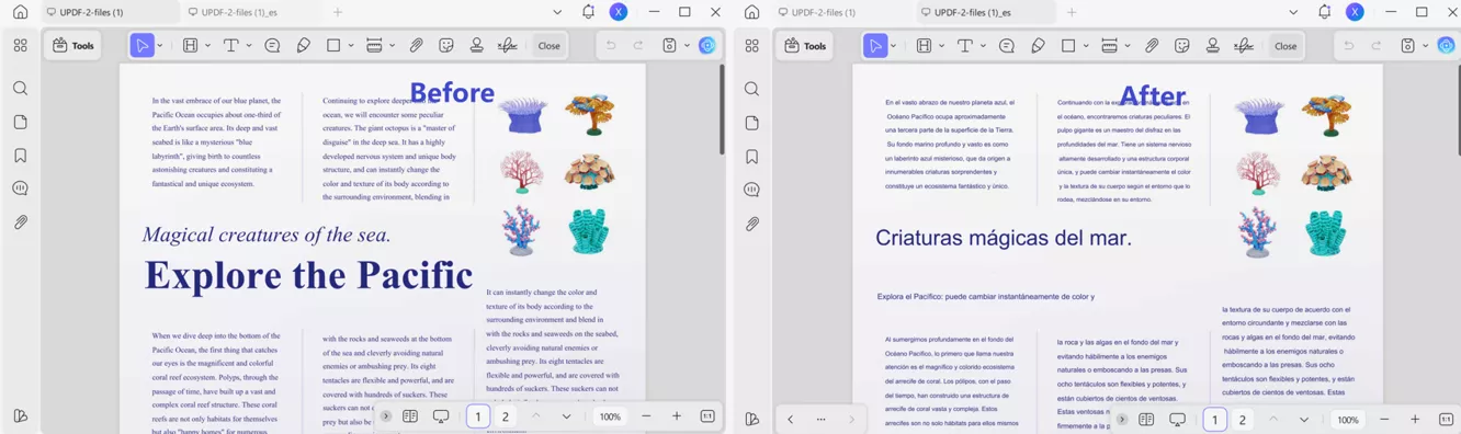 As we've mentioned earlier, UPDF supports translating a PDF from Spanish to English by generating a new file, which can keep the original layouts. This practical feature makes reviewing the result more convenient. Follow the steps below to do so: