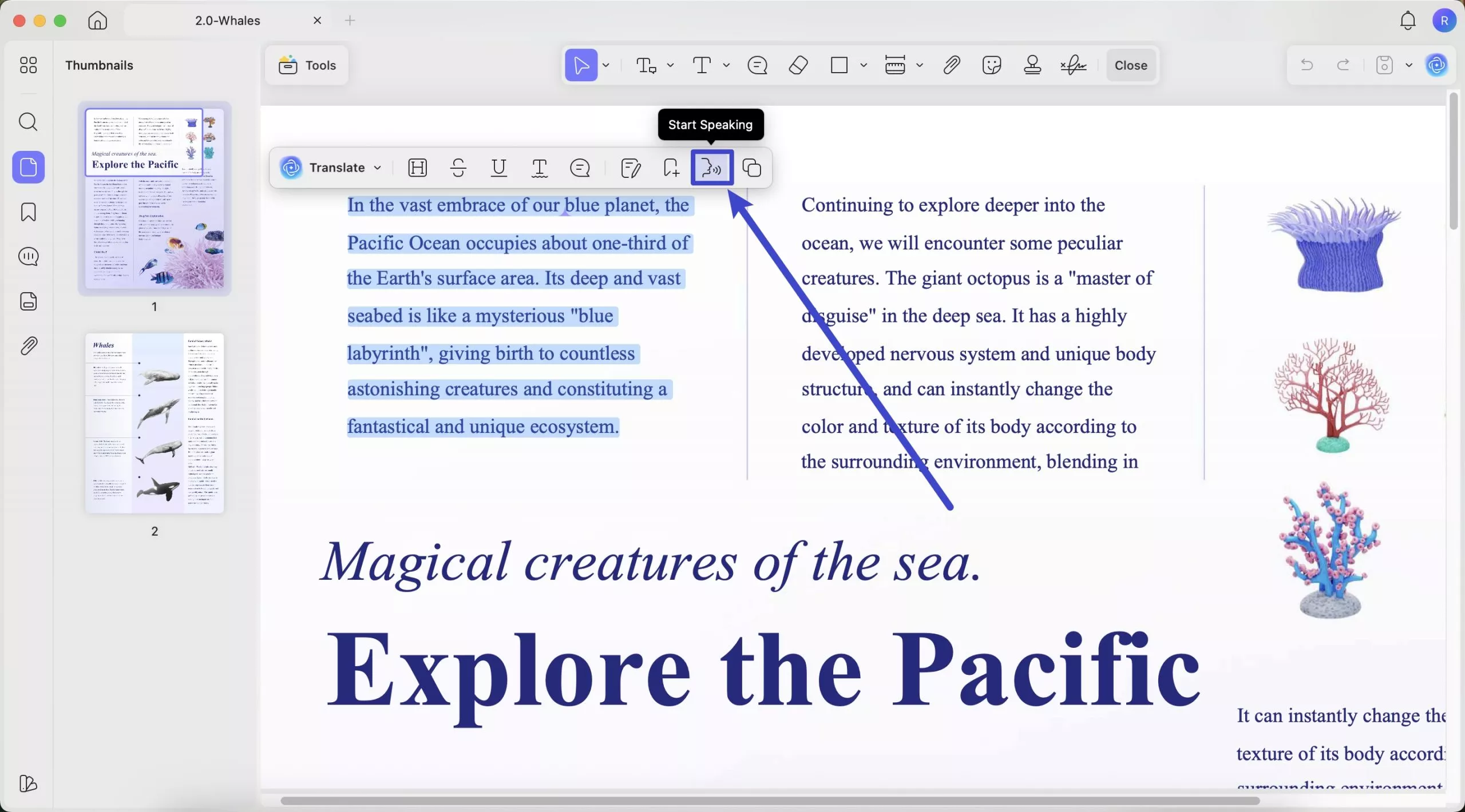 UPDF enables you to listen to your documents instead of going through tiresome reading. Follow these simple steps to learn how to use its "Start Speaking" feature to make your text speak like a human.