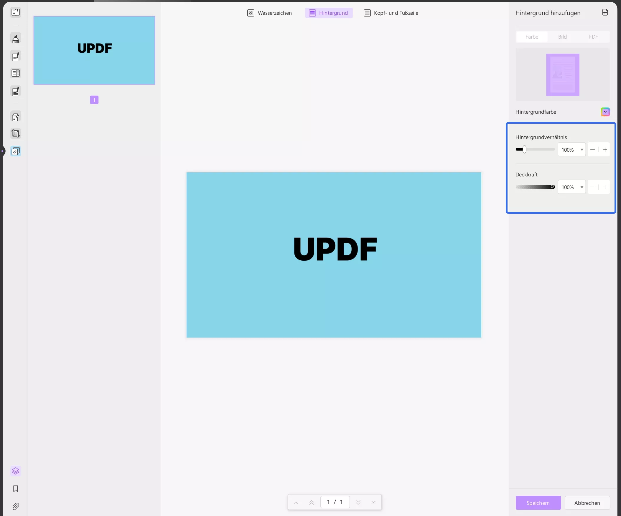 - Das Verhältnis und die Deckkraft der Hintergrundfarbe anpassen.