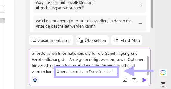 - Geben Sie eine Aufforderung wie „Übersetze dies in [Sprache]“ ein.