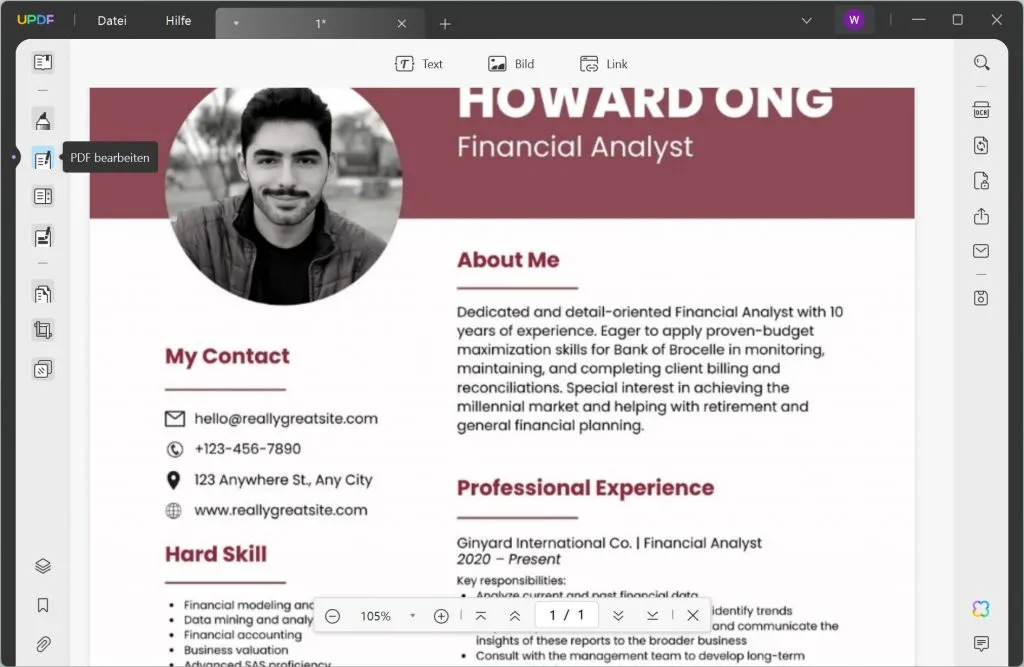 - Bearbeite schnell und effizient Text und Bilder in deinem PDF-Lebenslauf.