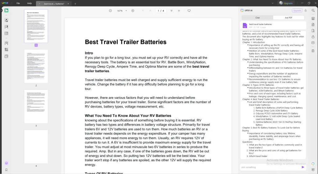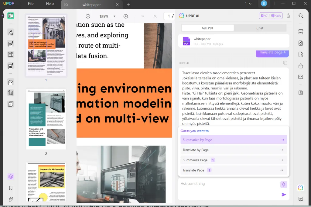 Mit den innovativen Funktionen von UPDF wird das Zusammenfassen eines PDFs zum Kinderspiel. Zunächst müssen Sie das PDF in UPDF importieren. Dann nutzen Sie die fortschrittlichen Zusammenfassungsfunktionen von UPDF AI, um den Inhalt zu komprimieren und dabei das Wesentliche automatisch beizubehalten. So können Sie den Kern des PDFs schnell erfassen, was Zeit spart und das Verständnis verbessert. Bei Bedarf können Sie per Prompts auch Änderung am PDF befehlen.