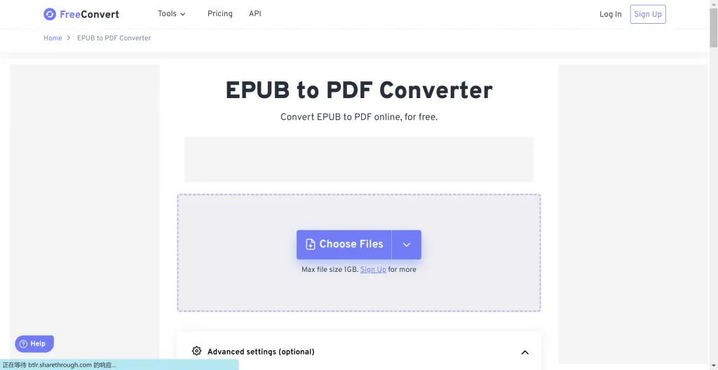 FreeConvert ist eines der beliebtesten Online-Tools zum Umwandeln von EPUB in PDF. Mit diesem kostenlosen Tool können Sie Ihre E-Books in eine Reihe von weit verbreiteten Formaten umwandeln, die sich perfekt zum Weitergeben und Drucken eignen. Es unterstützt EPUB, PDF, DOCX und ist damit ein vielseitiges Tool für die Dateikonvertierung.