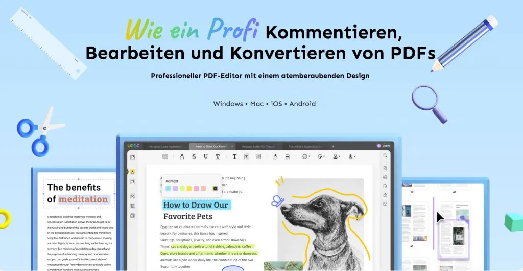 UPDF ist für verschiedene Plattformen wie Windows, macOS, iOS, iPadOS und Android verfügbar und hat eine ansprechende Benutzeroberfläche entwickelt, die die Arbeit an schwierigen PDF-Aufgaben leicht und angenehm macht. Zusätzliche Funktionen wie PDF-Komprimierung, PDF-Glätten, Sicherheitsfunktionen, PDF-Signierung usw. ergänzen das reichhaltige Funktionsangebot, das sich ständig weiterentwickelt und wächst.