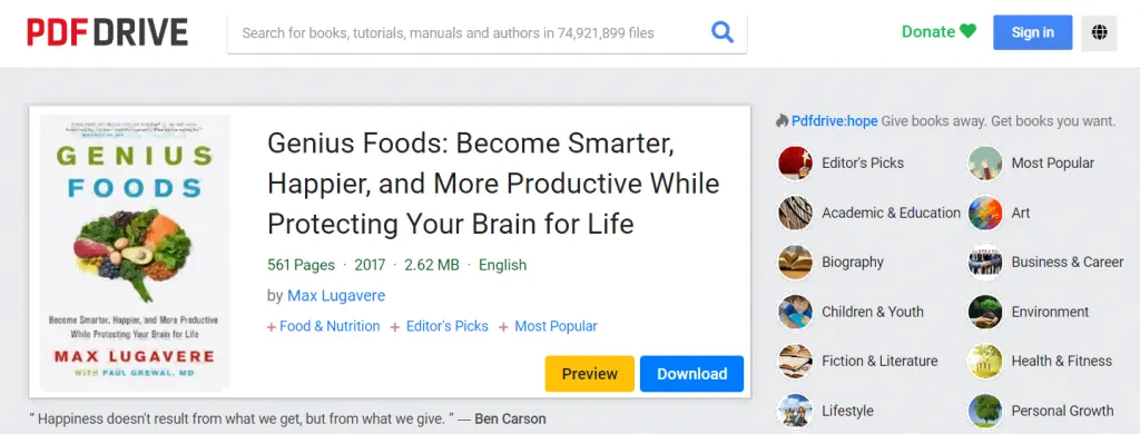 PDF Drive hat Millionen von Titeln zur Auswahl. Sollten Sie also ein PDF zu einem bestimmten Thema brauchen, können Sie einfach in den Kategorien „Beliebteste und Editor's Pick Option“ nach ihnen suchen.