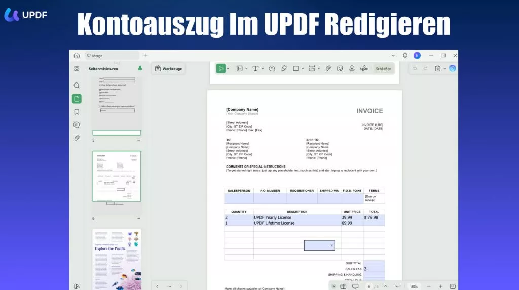 Wann immer Sie Ihren Kontoauszug mit jemandem teilen möchten, sollten Sie ihn vor der Weitergabe bearbeiten und zensieren. Mit UPDF können Sie einen Kontoauszug ganz einfach per Drag-and-Drop und mit anderen umfangreichen Funktionen bearbeiten und sensible Stellen unkenntlich machen. Laden Sie UPDF also am besten noch heute herunter, um die oben genannten Schritte zu befolgen und Ihre Kontoauszüge für die Weitergabe zu sichern.