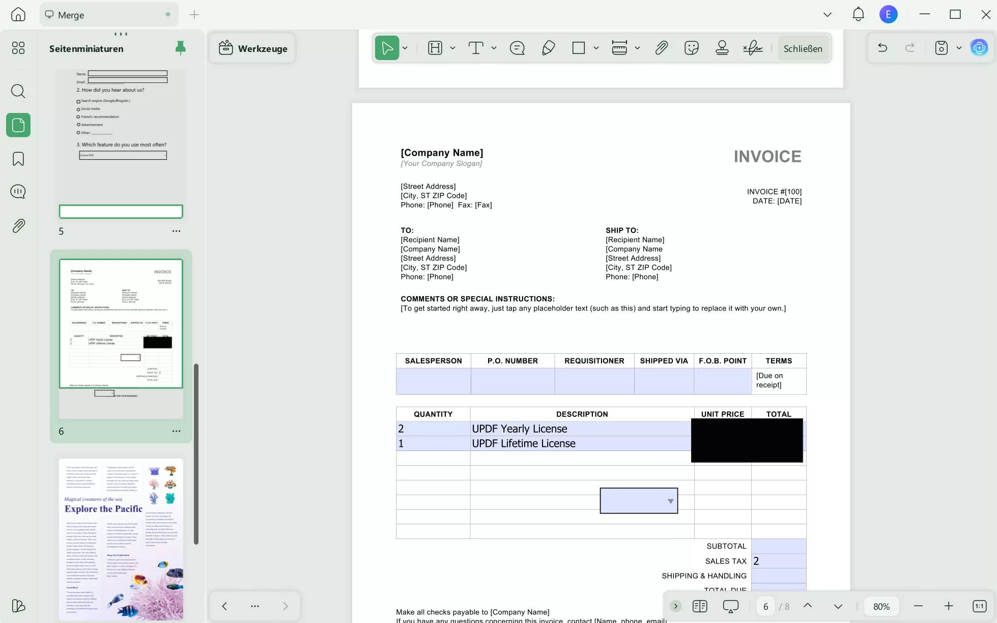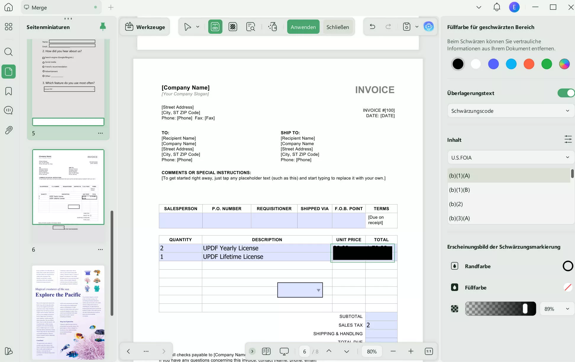 Die Schritte zum Bearbeiten und Schwärzen eines Kontoauszugs mit UPDF