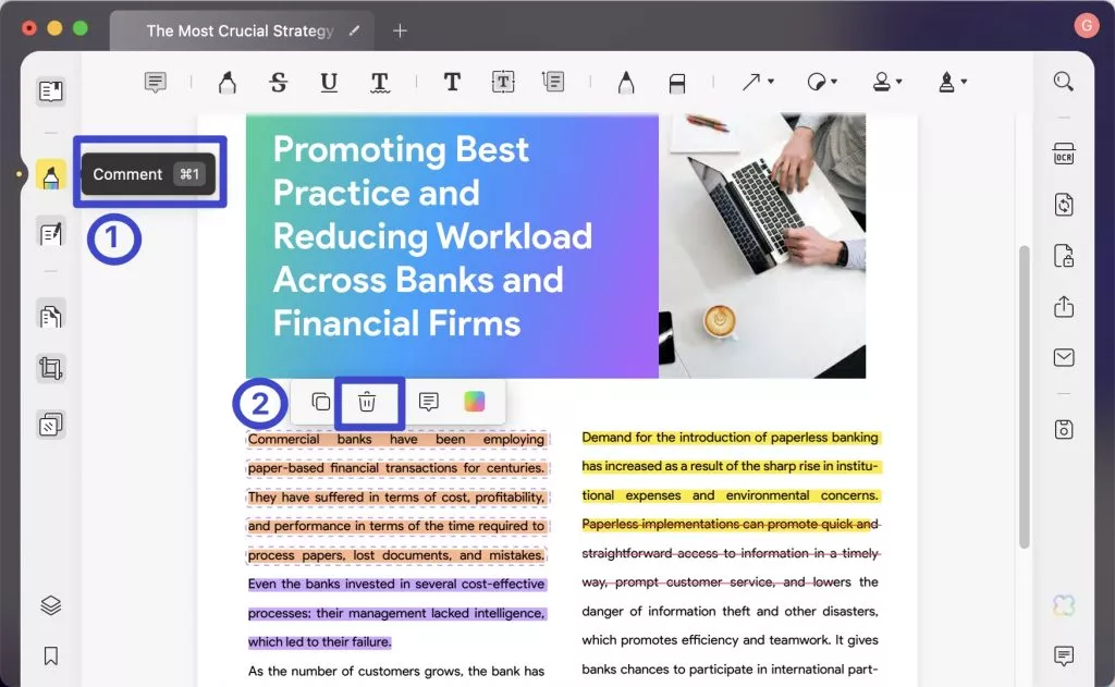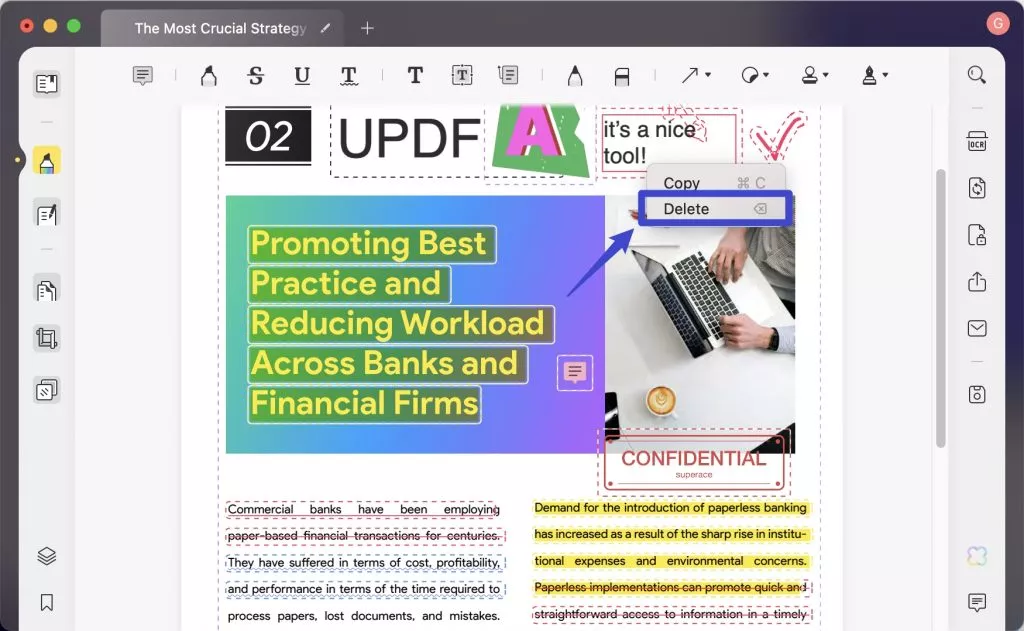 Minimierung der Dateigröße: Es liegt auf der Hand, dass umfangreiche Beschriftungen zu einer Vergrößerung der Datei führen. Entfernen Sie alle unnötigen Beschriftungen, um die Größe der PDF-Datei auf dem Mac zu reduzieren.
