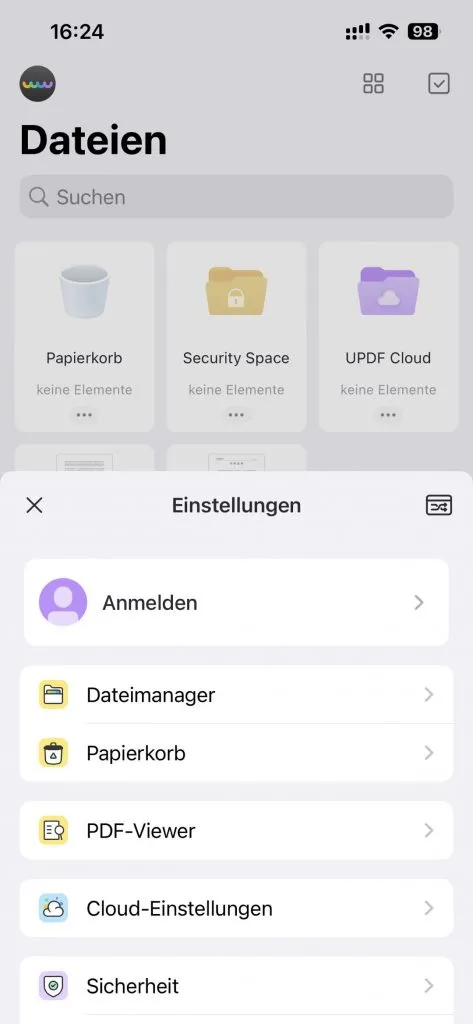 Wenn du dir das Sperren deiner Fotos so leicht wie möglich machen willst, solltest du am besten ein Dokumentenmanagement-Tool wie UPDF für iOS verwenden, das gleichzeitig auch als Fotoverwaltungslösung fungiert. UPDF verfügt über eine Funktion namens "Security Space", die durch den Passcode des Geräts oder Face ID geschützt ist. Sobald du deine Fotos in diesen Security Space hinzugefügt hast, sind sie ohne Passcode oder Face ID nicht mehr zugänglich. Um diese Funktion nutzen zu können, ladest du zuerst UPDF herunter.