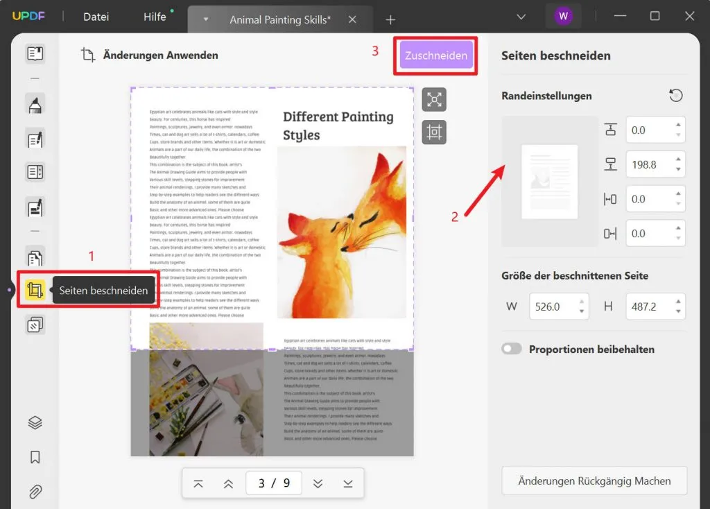 Mit der Funktion zum Zuschneiden von Seiten in UPDF ist es ganz einfach, Leerzeichen aus einem PDF zu entfernen. Wählen Sie einfach den Bereich aus, den Sie zuschneiden möchten, und wenden Sie die Änderungen auf alle Seiten Ihres Dokuments an, um ein nahtloses Leseerlebnis zu gewährleisten. Sehen Sie sich auch das Video-Tutorial unten an: