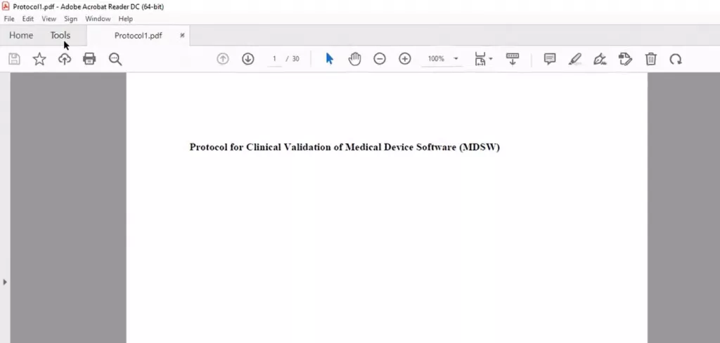 Öffnen Sie Ihr PDF in Adobe Acrobat, um das Stempelmenü zu öffnen. Dann wählen Sie „Tools“ in der oberen linken Symbolleiste.