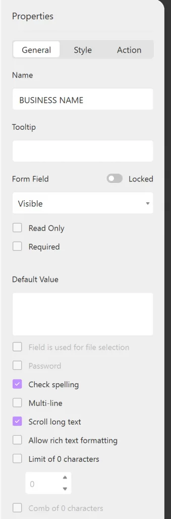 Nachdem Sie die Formularfelder hinzugefügt haben, können Sie auf sie doppelklicken, um die Eigenschaften anzupassen, z. B. die Feldfarbe zu ändern, Formularfelder umzubenennen usw.