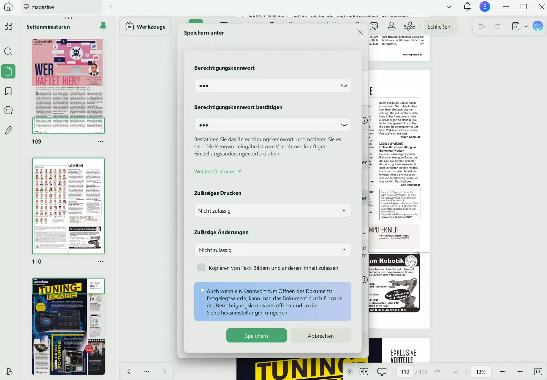 Jetzt kannst du die freigeschaltete Version des PDF-Dokuments an einem beliebigen Ort auf deinem Computer speichern.