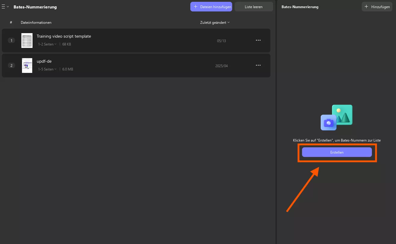 Um die gesamte Liste der PDF-Dateien zu löschen, wählen Sie oben im Fenster die Schaltfläche „Liste leeren“.