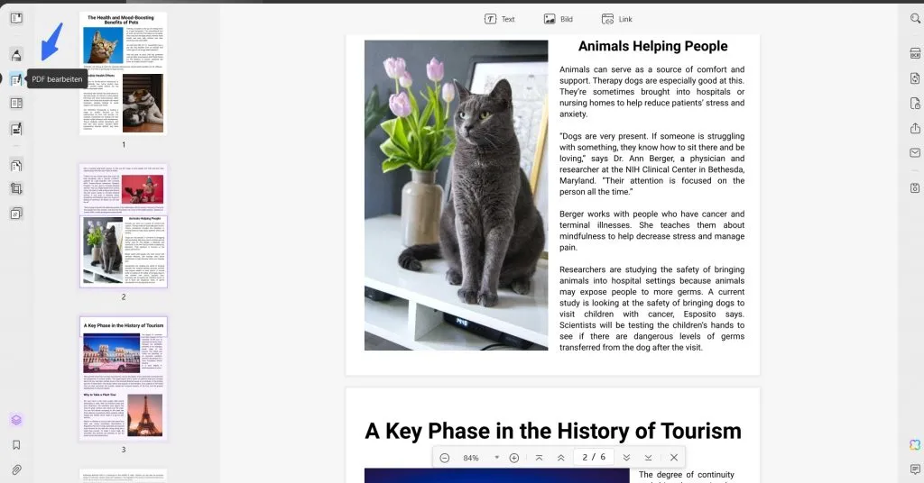 - Bearbeiten von Text, Bildern und Links in PDF-Dateien.
