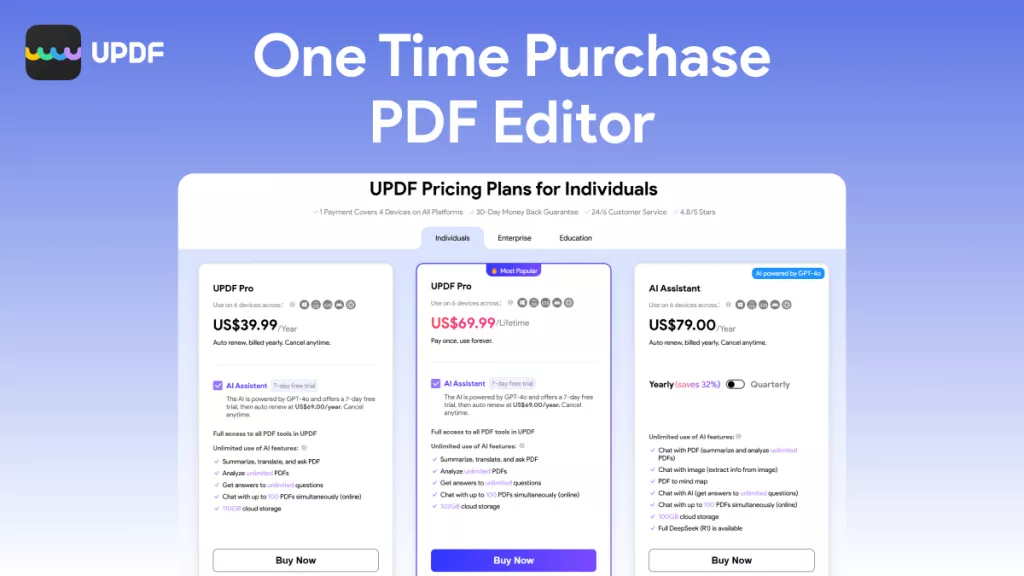 In addition to these features, UPDF gets frequent updates with brand-new features. So, your PDF experience continues to improve over time. It’s also available for all platforms, including Windows, Mac, iOS, and Android. Moreover, you can use a single license on two mobile and two desktop platforms at once. So don’t miss out! Click here to buy UPDF now!