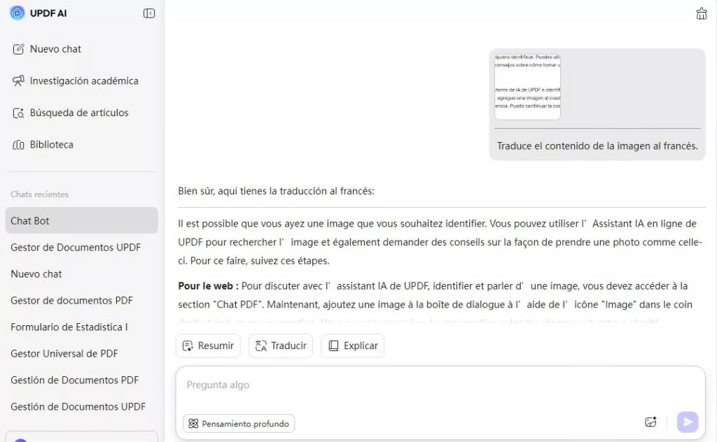 Parte 5. Cómo Traducir la Imagen al Idioma Deseado Chateando con Imagen