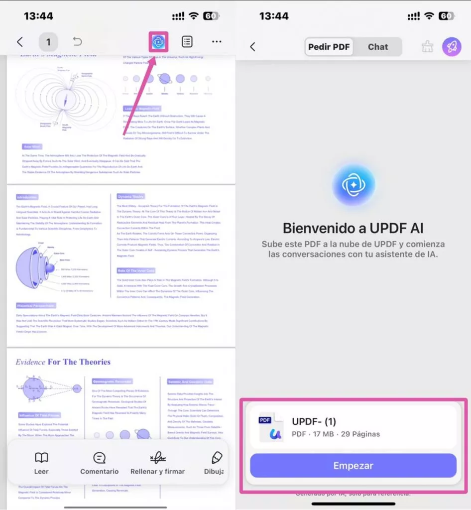 - Para dispositivos móviles: Siga estos pasos para acceder a la función UPDF AI en la aplicación móvil.