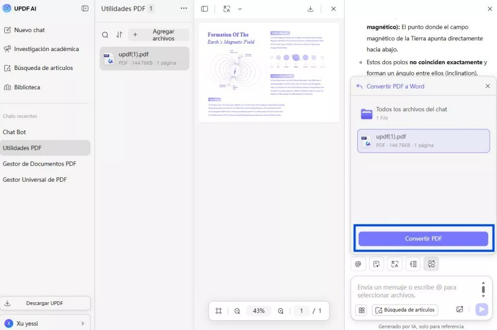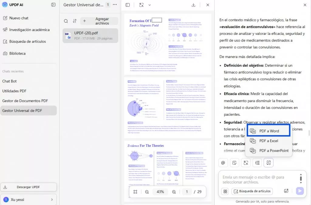 Con el conversor de PDF de UPDF AI, los usuarios pueden convertir archivos PDF en documentos Word, Excel y PowerPoint totalmente editables, conservando el diseño y las imágenes. Incluso admite la conversión por lotes, el OCR para archivos escaneados y el procesamiento rápido de documentos de gran tamaño.