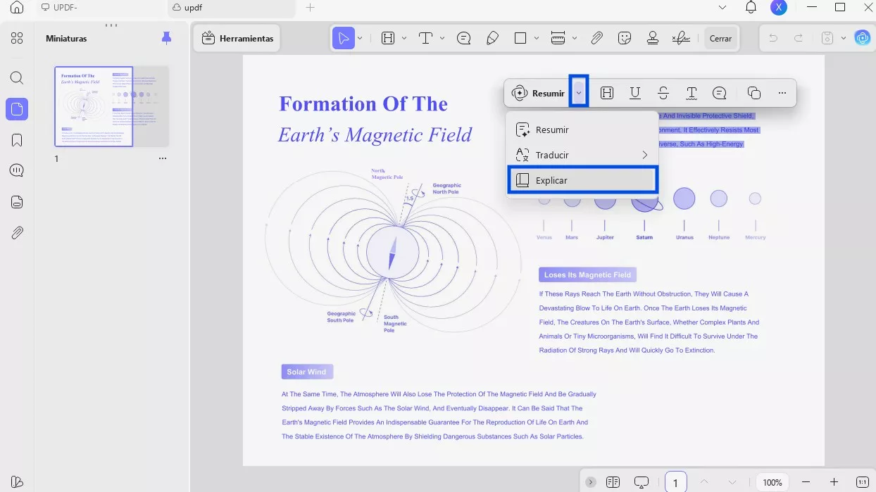 Si un PDF contiene frases complejas que no conoces, puedes utilizar el asistente de IA de UPDF para que te explique esos términos.