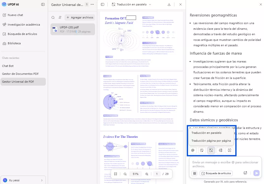 También puedes traducir el PDF con el Asistente de IA de la aplicación de UPDF de tres formas que te explicamos a continuación:
