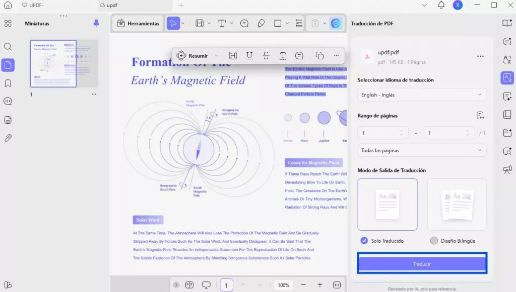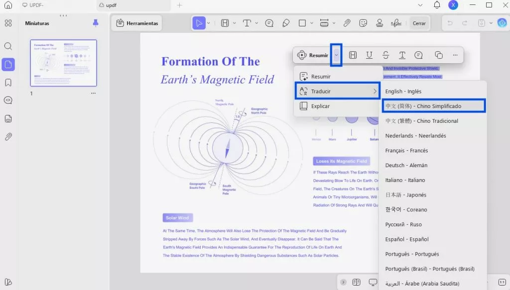 - Traduzca el contenido del PDF a cualquier idioma que desee.