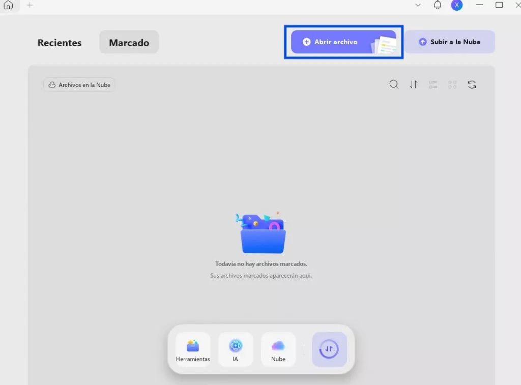 Paso 1. Para empezar, descargue e inicie UPDF en su escritorio. En la interfaz principal, pulse el botón «Abrir archivo» para importar el PDF que desea que UPDF AI explique.