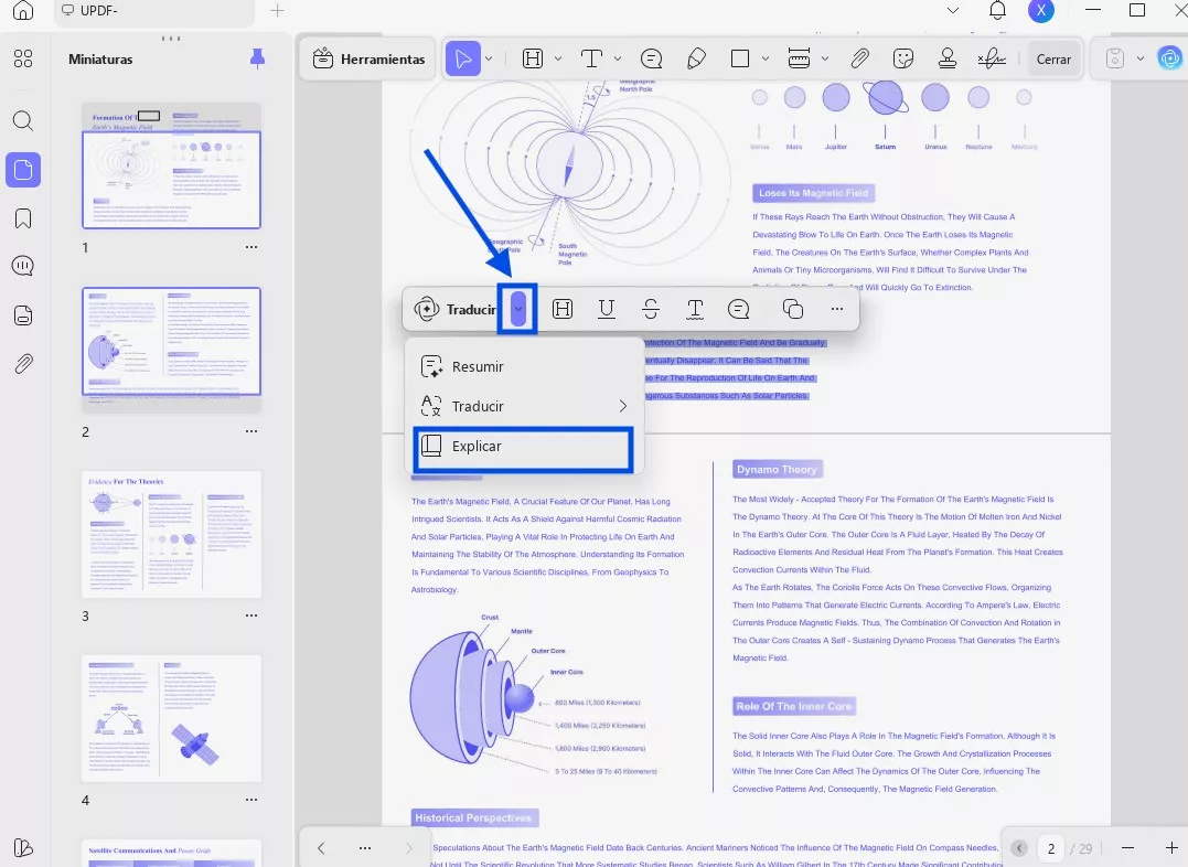 Paso 2. Selecciona el contenido y explícalo con UPDF AI