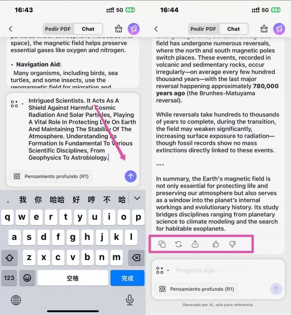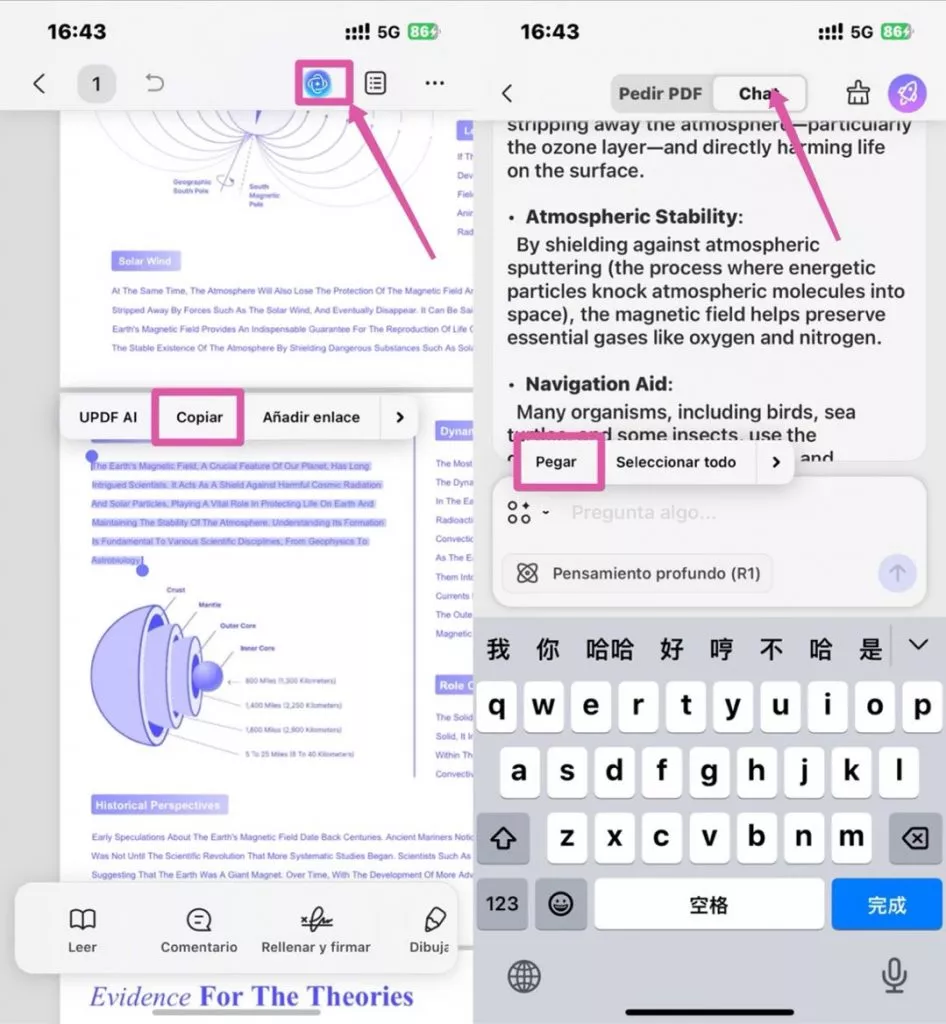 Para los usuarios que prefieren una respuesta más personalizada, este método les permite copiar contenido específico y pegarlo en el modo de chat de UPDF AI para obtener una explicación. Este enfoque es útil para obtener una aclaración más detallada o personalizada, que se explica a continuación: