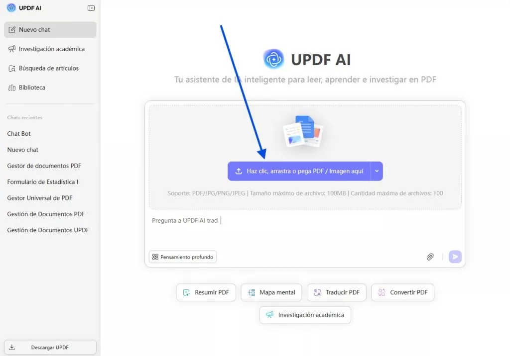 Si tienes dudas sobre un documento PDF que tienes en tu dispositivo, puedes subirlo fácilmente a la plataforma de IA y obtener la explicación que necesitas.