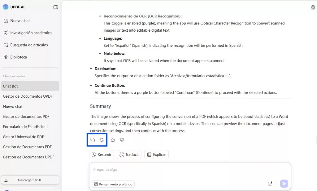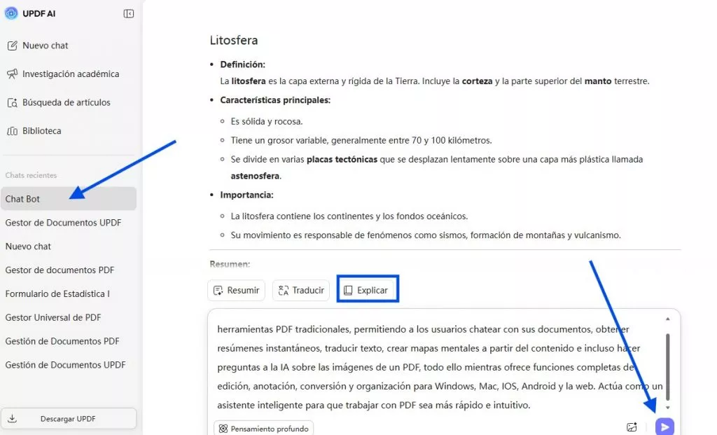 Escenario 2: Explicar con el Bot de UPDF AI
