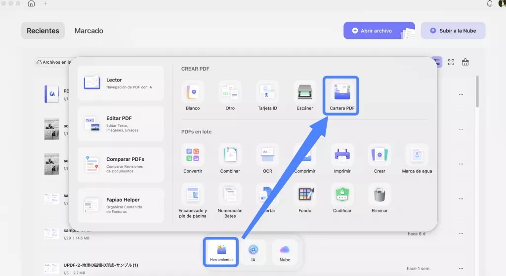 Puede reunir varios archivos en un único documento de portafolio con UPDF para Mac. Los siguientes pasos explican cómo hacerlo.